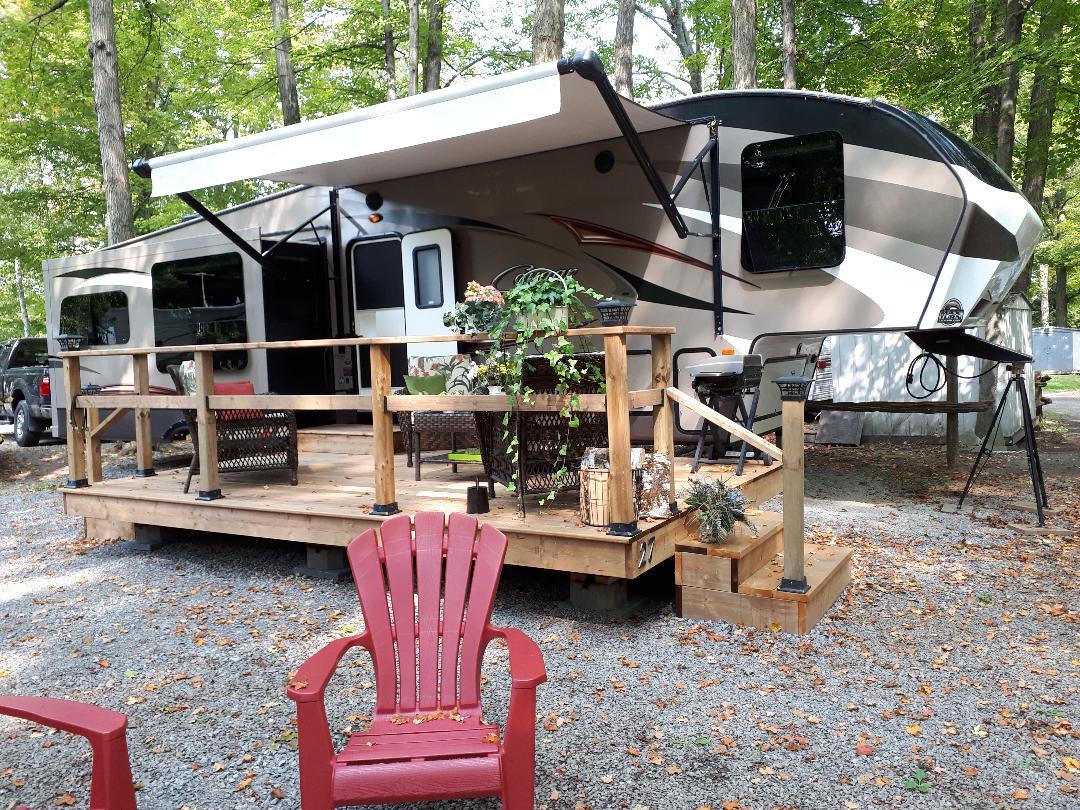 Beautiful, 2015 Cougar 5th Wheel, Model 333MKS 42 Feet, 3 electric slides 1 bedroom with Queen Bed and fold down couch in living room, walk in shower. Comes with: BBQ, Garden Shed, Large Umbrella with Stand, Beautiful Large Deck, Patio Furniture, with cushions, Deck Box for cushions, Lawn Chairs, Wood Rack with new cover, New Fire Pit with Screen Cover, all Kitchen Dishes and Utensils, Big Screen TV. Recent Propane Safety Certification and 2 New 30LB. tanks.